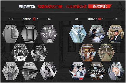 此外,尚益达还会全力扶持、一路护航合作伙伴发展“养店之路”:提供完善的培训资料,并且不定期开设老板、店长、导购等培训班;派出终端帮扶团队相助策划单店营销、联盟活动、媒体推广等,有标准的VI广告设计模板用作广告推广,并能制作统一的活动礼品来支持终端促销等活动;建立明确的区域保护制度、严格执行全国统一的出厂价格和零售指导价格、保障合作伙伴的合法权益;承诺24小时内完成订单的设计方案,让门店客户减少等待时间、提高满意度。