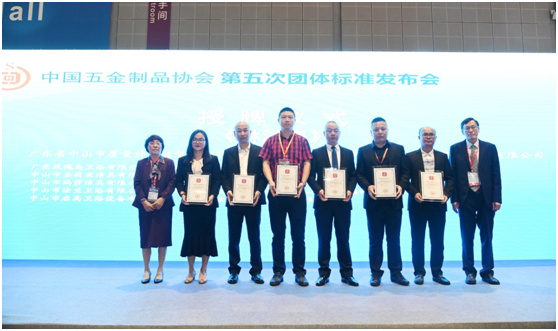 工业和信息化部消费品工业司司长高延敏、中国五金制品协会理事长石僧兰上台对参编单位举行授牌仪式。