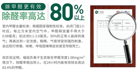 负离子健康型板材的第二重技术标准是:甲醛去除率;
