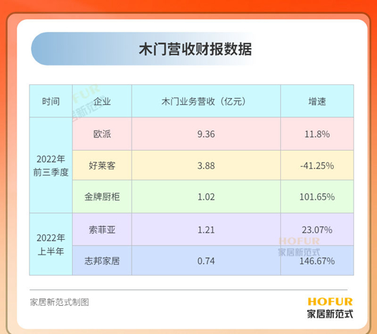 定制家居行业跨界木门发展形势迅猛,从2022前三季度业绩报表来看,已经较具规模,大有赶超并领先之势。