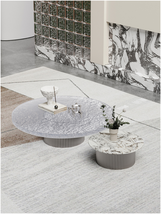 异形茶几不意味着稀奇古怪,而是创意的材质、线条、形状。造型独特的茶几搭配出来的空间感极其高级。