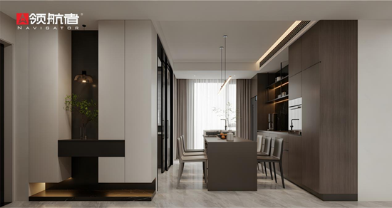 真正的整家定制美学,更注重人文关怀与个性化表达。领航者家居摒弃“千屋一面”的标准化设计,为每个家庭提供专属定制服务。设计师会深入沟通用户的生活习惯、审美偏好与家庭结构,为有孩童的家庭设计圆角柜体与可调节收纳格,为职场人士打造隐藏式办公区,让门墙柜不仅契合空间尺度,更精准匹配居者的生活轨迹。