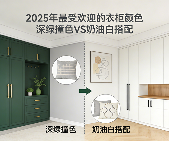 在2025年的家居设计领域,色彩已成为定义空间情绪的核心语言。当消费者从“功能优先”转向“情感共鸣”的消费逻辑时,衣柜这一卧室视觉重心,正经历着从单一实用主义向色彩美学的深度转型。其中,深绿撞色与奶油白搭配两大趋势,凭借对自然生命力与治愈氛围的精准捕捉,成为年度最受关注的配色方案。