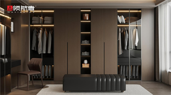 衣柜,是卧室空间的美学担当,更是生活品味的直观体现。一款自带高级感的衣柜,能瞬间提升整个卧室的格调。领航者家居,凭借卓越材质与极强的风格塑造力,精准拿捏多元美学精髓,无论是利落的现代简约、精致的轻奢格调,还是温润的新中式韵味,都能完美呈现,打造真正戳中人心的“梦中情柜”。