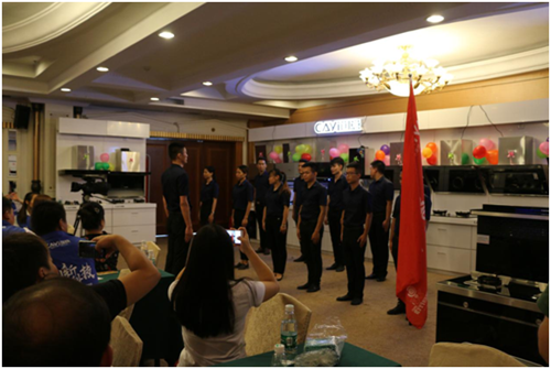 陈董振奋人心的讲话极大地鼓舞了现场经销商们的士气!随后,在创意领导的带领下,创意团队进行了全方位的展示。创意团队的精英们个个英姿飒爽,在全场经销商家人们的注视下,创意团队完成了一个个标准的展示动作。他们坚定的眼神、坚挺的背脊使经销商们对创意团队的信任值呈直线往上涨。