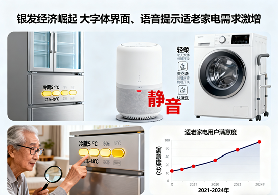 随着中国步入深度老龄化社会,银发经济正以前所未有的速度崛起。在这一背景下,大字体界面、语音提示等适老家电需求呈现爆发式增长,成为家电行业新的增长点。老年人不再是被动接受科技的群体,而是主动参与消费、引领需求的新兴力量,适老化家电正从"功能适老"向"体验适老"的深刻转变。