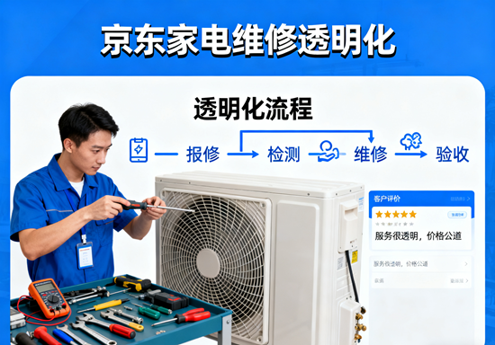 京东服务+从定价、展示、收费、售后四个环节建立透明化服务体系,让家电维修"每一分钱都花得明白"。其"先评估再下单—先确认再维修—先验收再付款"的三阶透明化操作规范,全方位保障消费者权益。