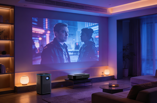 通过华为鸿蒙智家、小米Vela等智能家居生态,可投影墙面可与手机、平板、游戏主机等设备无缝联动。例如,用手机刷到有趣的短视频时,只需“一甩”即可投至墙面;玩Switch游戏时,墙面自动切换至游戏模式,延迟低至15ms,确保操作跟手性。