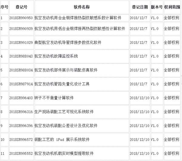 从官方渠道获悉,航天智造(厦门)科技研究院已经获得的如下17项目航空软件系统完整的知识产权授权(航天智造相关软件登记信息)
