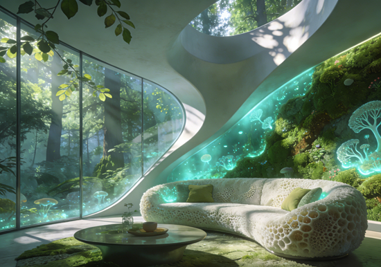 传统的木材、石材将退居二线,取而代之的是“活性材料”。菌丝体(Mycelium)培养的灯罩、藻类(Algae)驱动的生物反应墙、以及能根据湿度自动开合的松果结构建材,将成为豪宅标配。