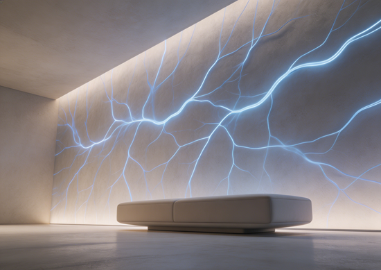 当你在深夜失眠时,床头那面AI微水泥墙会投射出模拟月光的光谱,并通过骨传导技术(无需耳机)播放定制化的脑波音乐。